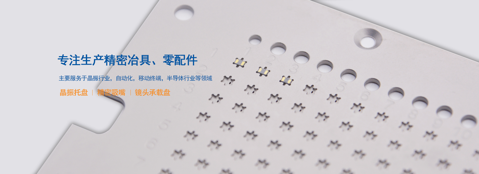 無錫吉微精密電子有限公司專業(yè)生產(chǎn)精密冶具、零配件等以及從事精密冶具配套設備生產(chǎn)的高新技術企業(yè),公司自2013成立以來,建立國際標準化管理體系,2018年曾通過ISO9001:2015質(zhì)量體系認證。同時獲得“國家科技型中小企業(yè)”榮譽證書,包括專利證書已經(jīng)50+。主要供應:晶振托盤、精密吸嘴、鏡頭承載盤等。